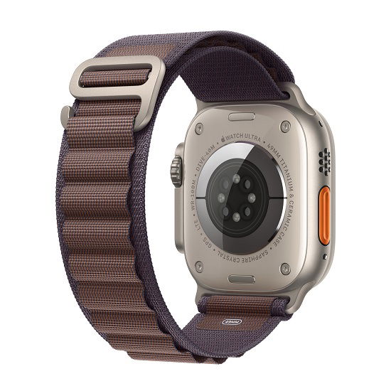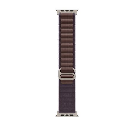 The rugged Alpine Loop is made from two textile layers woven together into one continuous piece without stitching. High-strength yarns reinforce the top loops, and the corrosion-resistant titanium G-hook slides easily into the loops for secure fit. This band is carbon neutral. The Alpine Loop contains 43% recycled content by weight, 100% of manufacturing electricity is covered by clean energy, and 50% or more of all carbon neutral Apple Watch products are shipped without airplanes.