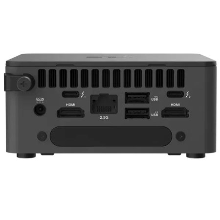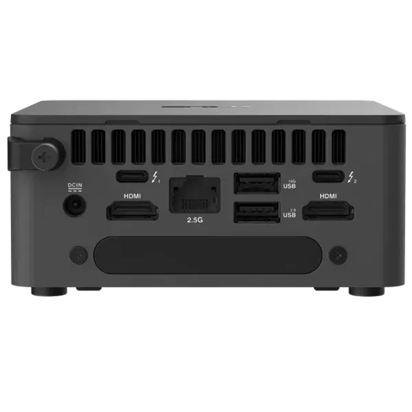 - Back I/O Ports: 2 x Thunderbolt 4 (5V/3A, 40Gbps), 1 x USB 3.2 Gen2 Type-A (5V/0.9A, 10Gbps), 1 x USB 2.0 (5V/0.5A), 2 x HDMI 2.1 (Up to 4K@60Hz), 1 x 2.5G RJ45 LAN, 1 x DC-in