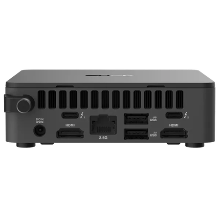 - Back I/O: 2 x Thunderbolt 4 Type-C Ports, 1 x USB 3.2 Gen2 Type-A (5V/0.9A, 10Gbps), 1 x USB 2.0 (5V/0.5A), 2 x HDMI 2.1 (Up to 4K@60Hz), 1 x 2.5G RJ45 LAN, 1 x DC-in