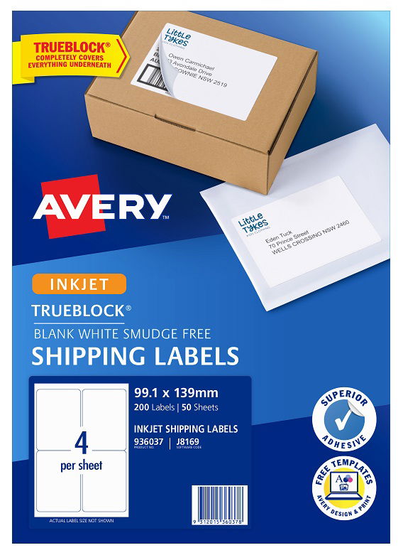 Creating custom and professional-looking labels for your shipping needs has never been so easy and cost effective with Avery White TrueBlock Shipping Labels. TrueBlock® labels have a unique silver backing making them completely opaque so they cover everything underneath such as labels or writing enabling old packaging to be reused.