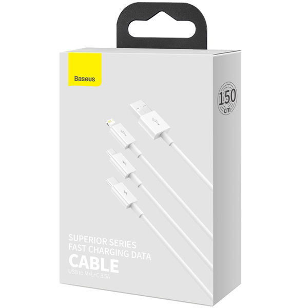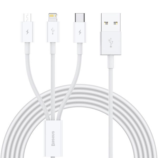 Baseus Superior 1.5m 3-in-1 USB to Micro USB, Lightning & USB-C Charge & Sync Cable - White