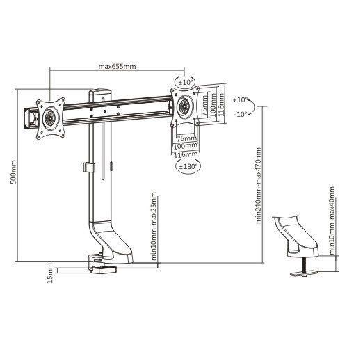 25mm Grommet?1040mm (Clamp?0.39"~0.98" Groet?0.39"~1.6") - Quick Release VESA Plate: Yes