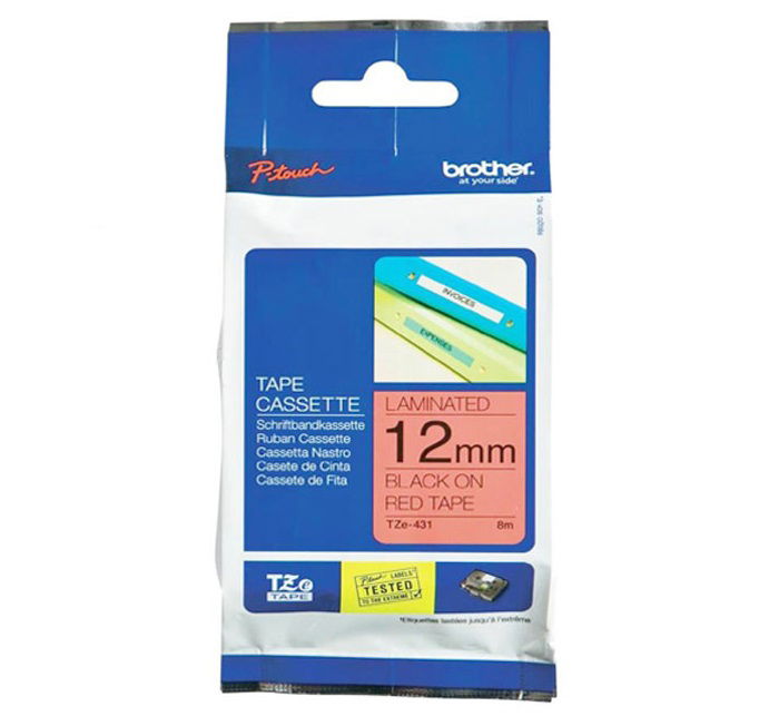 Ideal for producing identification labels for cables, wires, PVC tubing or anything else cylinder-shaped, the special adhesive on the Brother TZe-FX431 black on red labelling tape ensures that your important labels stay put for longer.