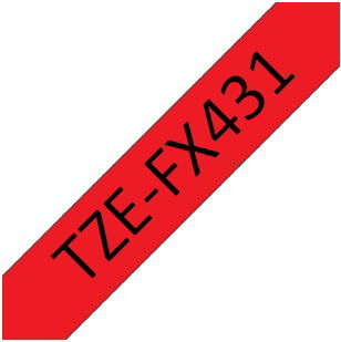 Brother P-Touch TZe-FX431 12mm Black on Red Flexible ID Laminated Label Tape
