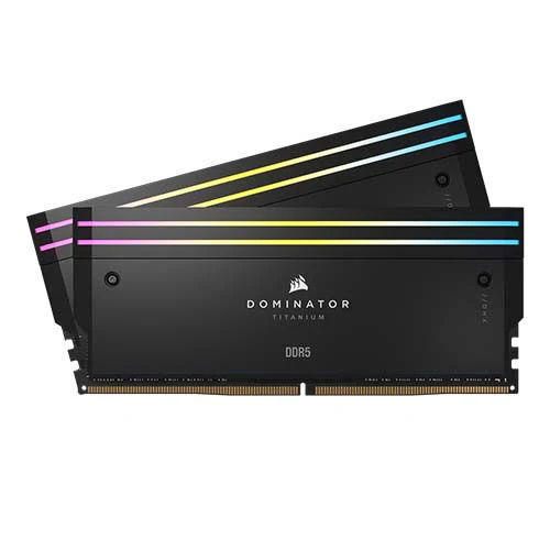 CORSAIR DOMINATOR TITANIUM RGB DDR5 Memory combines clean, refined styling with superior die-cast aluminum construction and advanced lighting design for a premium memory experience. Optimized for Intel systems.