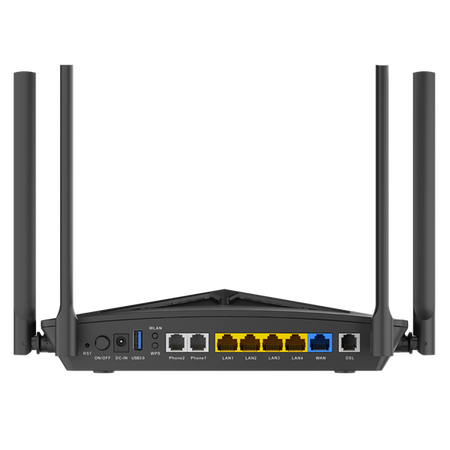 - LED: Power, DSL, Internet, WAN, LAN, 2.4 GHz Wi-Fi, 5 GHz Wi-Fi, WPS, USB, Phone