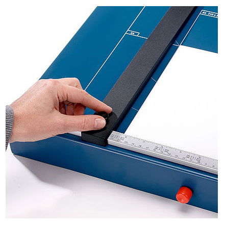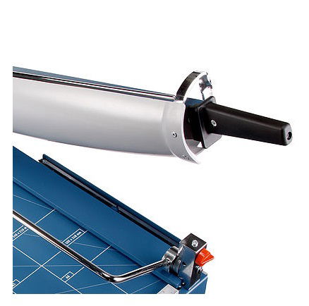 The Dahle 569 Premium Guillotine paper cutter is one of the safest, most capable trimmers ever developed. Fingers are shielded by a revolutionary safety guard that rotates around the self-sharpening blade for complete protection.