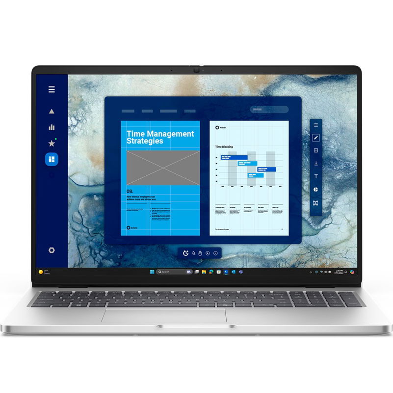 Built to travel wherever your work takes you, the Dell Pro 16 undergoes rigorous MIL-STD testing for durability and reliability. With the help of Copilot in Windows, you have instant access to your own personal AI assistant using the Windows Copilot key. With fast connectivity options up to Wi-Fi 6e, you can stay productive from anywhere. Thanks to an expansive 16:10 display with sleek, narrow bezels, Dell Pro 16 has 10% more screen area than the predecessor. This means you can work more productively on a roomier, more detailed screen.