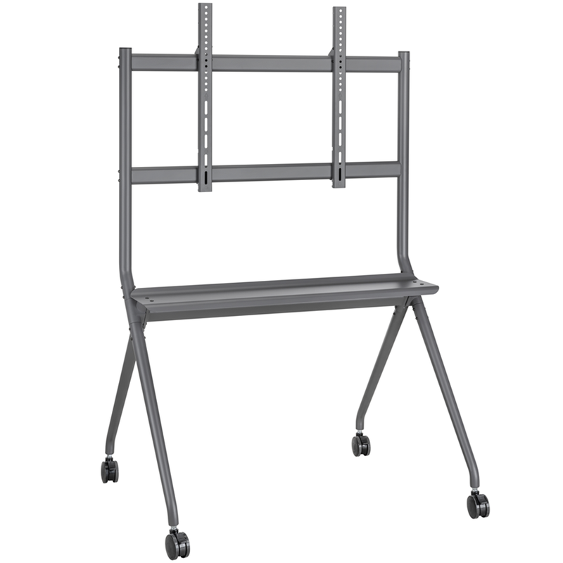 Take teamwork on the go with the Heavy-Duty Studio TV Cart, designed for versatility and durability in any setting. This robust cart supports screens from 50" to 86" and accommodates VESA sizes up to 800 x 600 mm, with an impressive weight capacity of 120kg/264lbs. The adjustable double hook design ensures secure mounting, while the spacious storage shelf keeps supplies like pens and sticky notes within easy reach. Built for mobility, the 75mm large casters provide smooth, flexible movement, making it ideal for studios, offices, or collaborative workspaces. Wherever your team goes, this TV cart keeps you connected and organized!