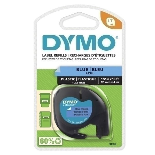 Dymo LetraTag Plastic Tape 12mm x 4m Blue is a colourful tear-resistant label for indoor use. Easy-peel backing for trouble-free application. Cassettes automatically load when inserted into your LetraTag.