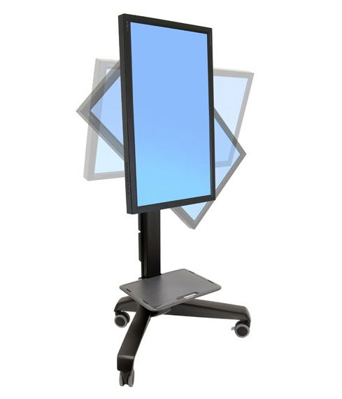This cart stretches your investment by serving a variety of projection needs. Features include portrait-to-landscape rotation, 20" (51 cm) effortless height adjustment and 20° independent display tilt. Get optimal positioning for both seated and standing audiences, in any application, in any part of your facility.