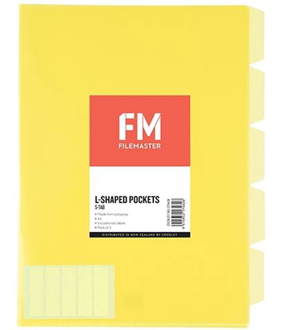 The Filemaster 5 Tab, L-Shaped Pockets are coloured which makes them ideal for easy identification. Also great for protection of your important documents.