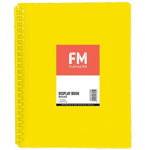 File Master 20 Pocket Refillable A4 Display Book with Insert Cover - Yellow