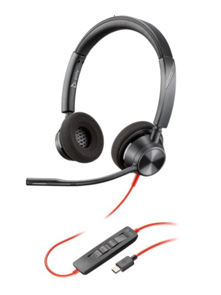 HP Poly Blackwire 3320 UC USB-C On Ear Wired Stereo Headset with Noise Cancelling