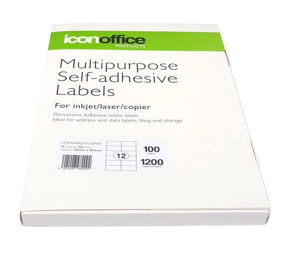 Icon Multipurpose Self-Adhesive Labels for inkjet, laser and copier. Permanent adhesive white labels are ideal for address and data labels, filing and storage.