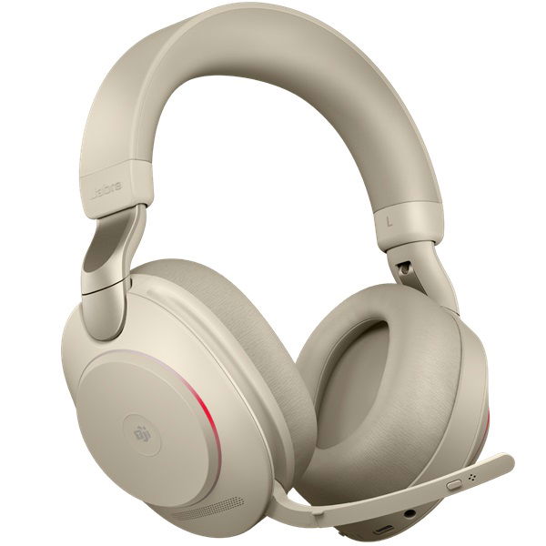 Jabra Evolve2 85 UC USB-A Bluetooth 3.5mm Over the Ear Stereo Headset with Noise Cancelling, USB-A Dongle, and Charging Stand - Beige, Optimised for UC