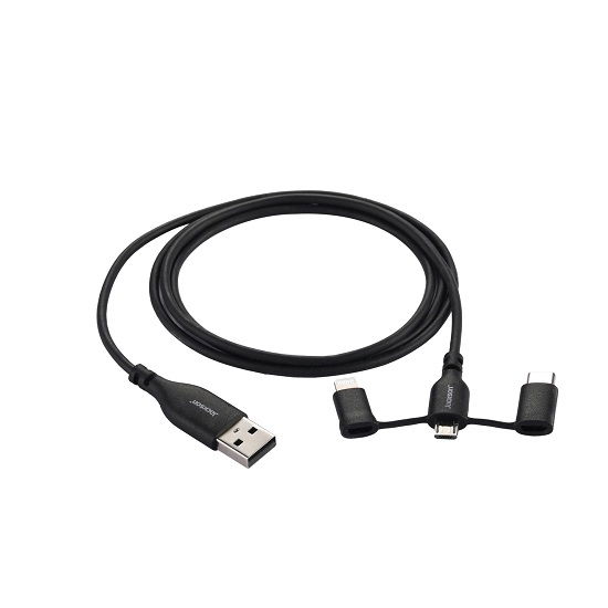 Jackson 1m MFi Certified 3-in-1 Charge & Sync Cable - Black
