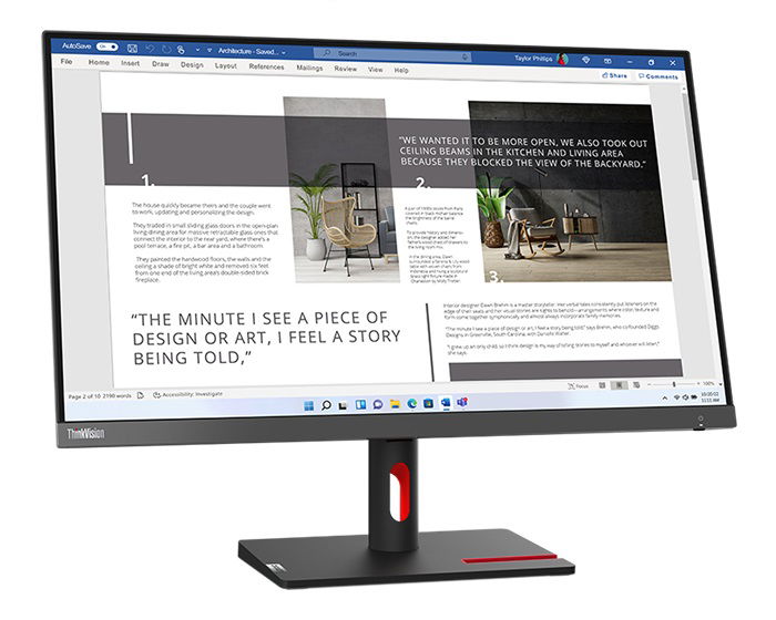 The ThinkVision S27i-30 Monitor hits the sweet spot when it comes to screen real estate. Its 27-inch, 1920 x 1080. Full-HD In-Plane Switching screen, with 3-side thin bezels, offers you an expansive view of the content on display, irrespective of your viewing angle. Experience vivid imagery with its wide 99% sRGB color gamut. Built-in Natural Low Blue Light technology cuts out harmful blue light emissions to reduce visual strain so you can sit back and enjoy its visual mastery.