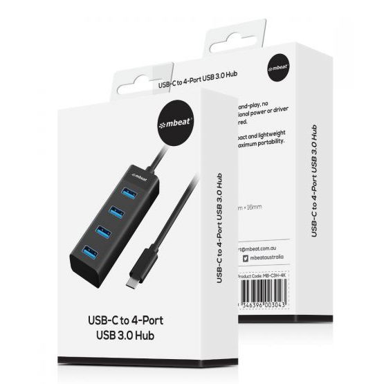 Mbeat USB-C to 4 Port USB 3.0 Hub - Black