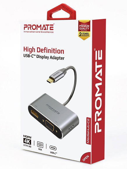 Promate MediaHub-C2 High Definition USB-C Display Adapter - HDMI, VGA