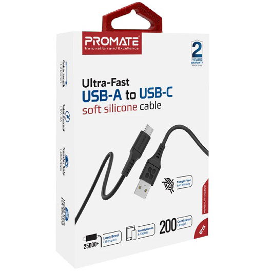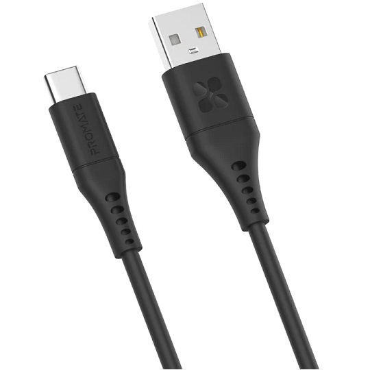Promate PowerLink-AC200 2m Ultra-Fast USB-A to USB-C Data & Charge Cable - Black