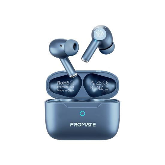 Promate ProPods In-Ear HD Bluetooth Wireless Earbuds with Intellitouch and 400mAh Charging Case - Blue