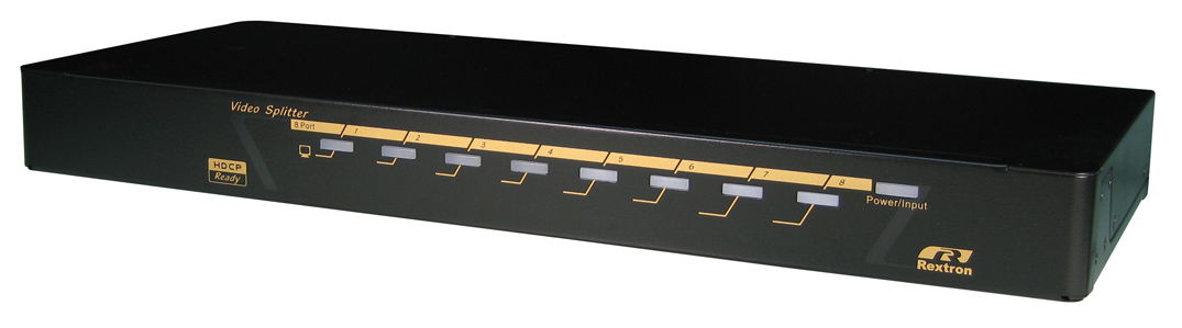 Video Splitter, VSD series broadcast and boost one Video signal source for 8 DVI monitors. There is no software or interface card to install.