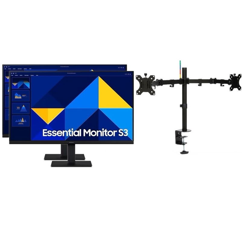 2x Samsung D300 27 Inch 1920 x 1080 FHD 5ms 100Hz IPS Gaming Monitor - HDMI, D-Sub + Monitor Arm