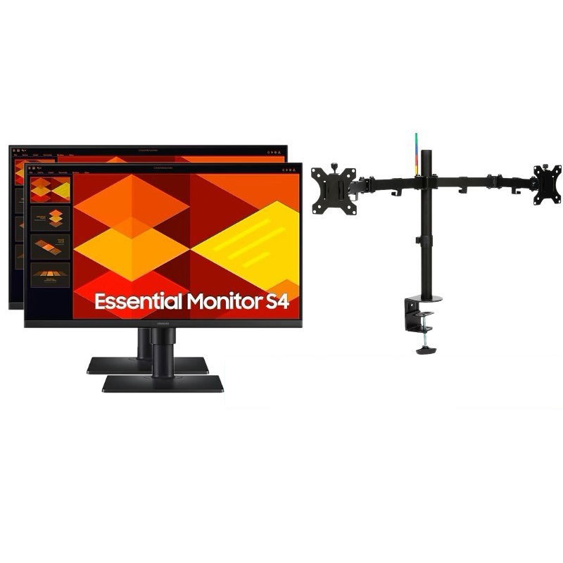 2x Samsung D400 24 Inch 1920 x 1080 FHD 5ms 100Hz IPS Monitor with USB Hub - HDMI, DisplayPort + Monitor Arm