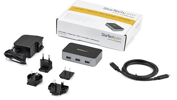 - This compact, lightweight USB-Type-C hub is a convenient and compact addition to your laptop setup. The hub is self-powered and includes a universal power adapter to provide better support of USB devices, such as external storage, that may draw more power. The USB-C host cable is detached and with an extended length of 3.3’ (1 m), it provides more flexibility for longer reach connection requirements and plug and play installation. For added flexibility and security, the mini hub features mounting holes to work with StarTech.com dock mounts such as SSPMSVESA or SSPMSUDWM.