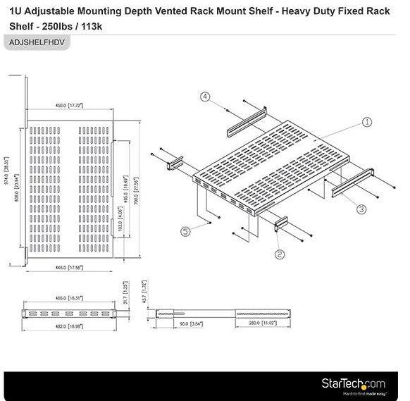 - 1U Heavy Duty Adjustable Vented Rackmount Shelf