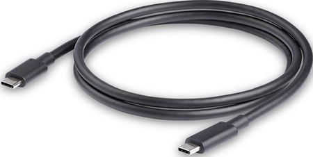 The StarTech USB-C Dual Monitor Docking Station gets power via USB-C by being plugged into a compatible laptop or a power adapter. This dock comes with the USB-C to USB-C cable required for this.