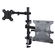 The VESA mounts offer wide adjustability options such as tilt +/-45° swivel +/-90°, and rotation 360°. The height can be adjusted along the 17.4in / 443mm pole and the arms can also extend out a maximum of 15.7in / 399mm out. Two joints (at the pole and middle of the arms) allow them to swivel +/-180°.