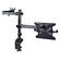 This well-ventilated laptop tray includes rubber pads to prevent scuffs and scratches. In addition, the tray features two independent adjustable padded arms that serve as a cradle to secure the laptop and can be independently positioned and secured along the sides of the tray to prevent blocking any port configuration on a laptop. The tray and monitor mount are both solid steel.