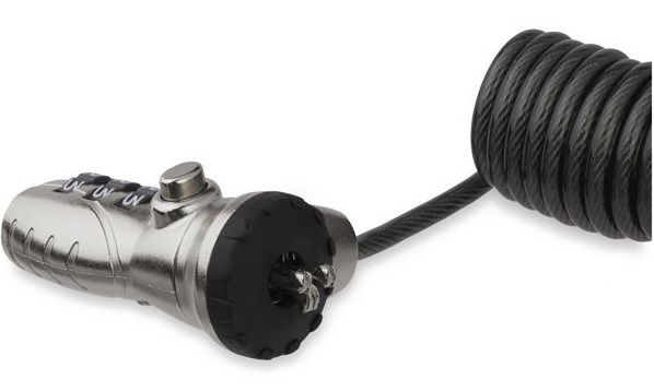 - Ideal for portable use or at the office, the laptop cable lock features a strong vinyl-coated steel cable (3.2 mm diameter). To secure your device in a variety of different work spaces, the flexible steel cable bends easily to loop around a stationary post or object.