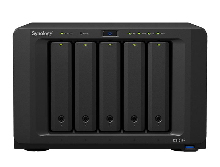 Synology DiskStation DS1517+ is a 5-bay NAS powered by a quad-core CPU with AES-NI hardware encryption engine. Coming with quad 1GbE LAN ports, it can be installed with a 10GbE network interface card (NIC) or a dual M.2 SSD adapter card, thereby enhancing network speeds or boosting performance with SSD cache.