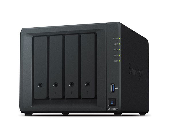 - Synology DS418play is designed to be your ideal, centralized multimedia hub with over 40TB of raw storage capacity, allowing you to transcode up to 2 channels of H.265/H.264 4K videos at the same time. With a powerful built-in AES-NI hardware encryption engine, DS418play also provides excellent encrypted file transmission.