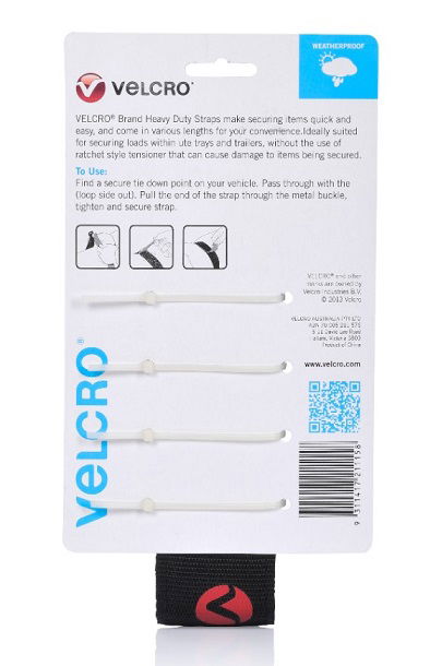 VELCRO Brand Heavy Duty Tie Down Straps are the fast, safe and reliable way to secure your load in transit. Get your gear from A to B in one piece without the need for knots, ropes, elasticised hook straps or ratchet-style tensioners.