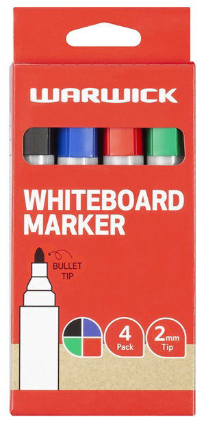 Warwick Bullet Tip Assorted Whiteboard Marker - 4 Pack